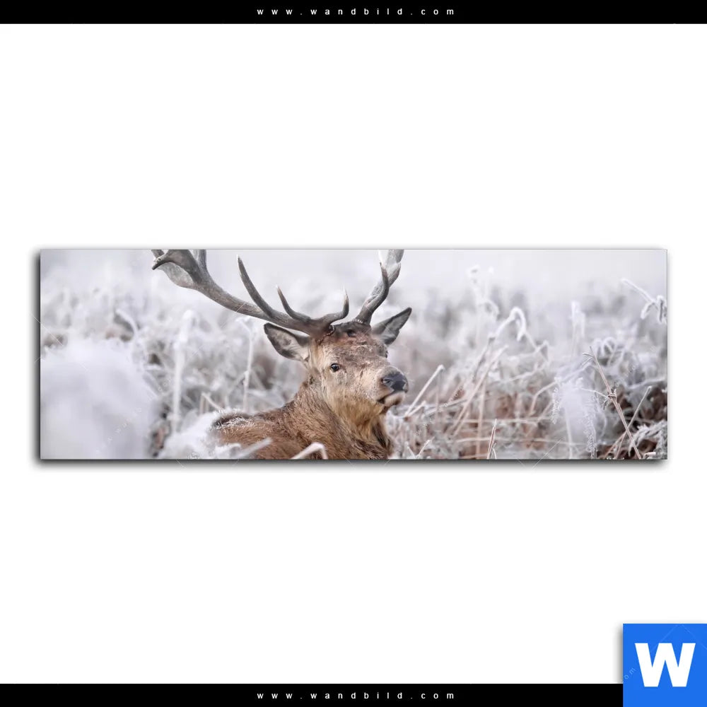 Aluminiumbild gebürstet | Rothirsch im Winter | Panorama