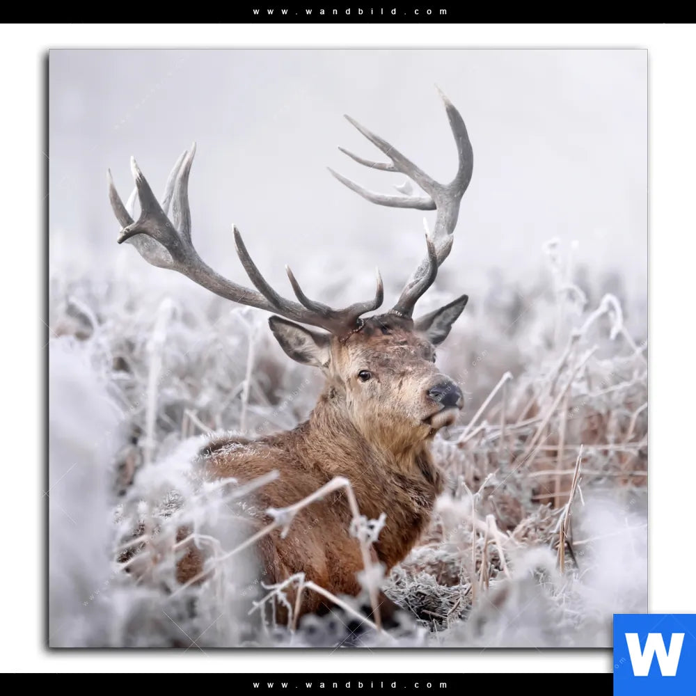 Aluminiumbild gebürstet | Rothirsch im Winter | Quadrat