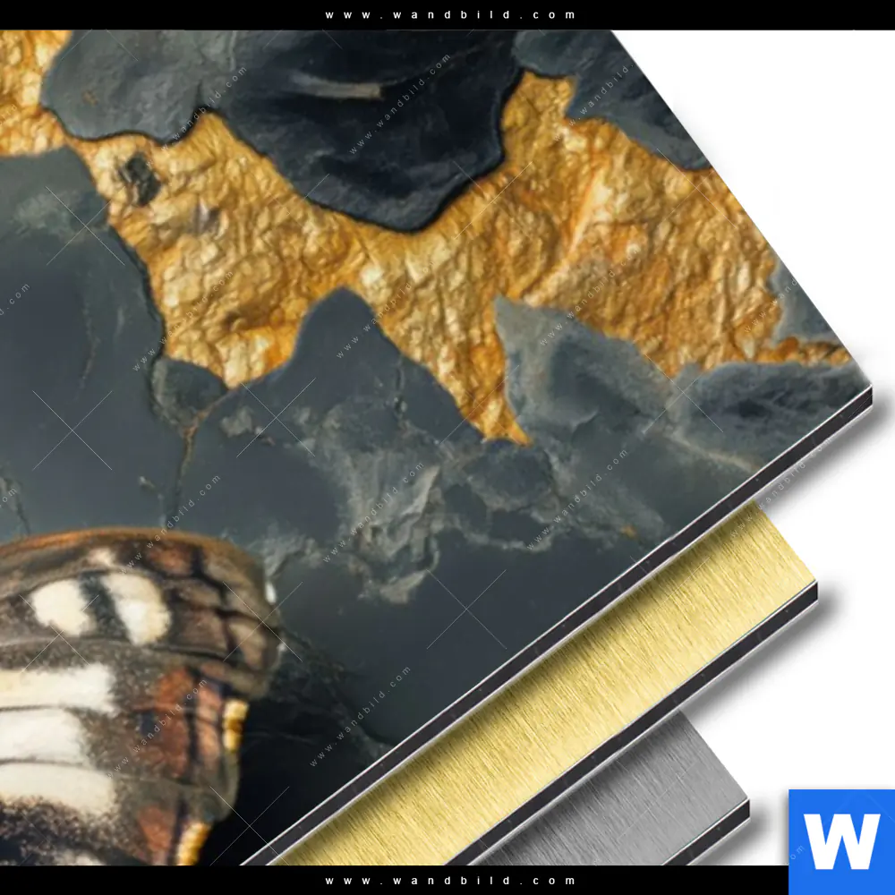 Aluminiumbild gebürstet | Schmetterling auf Marmor | Schmal