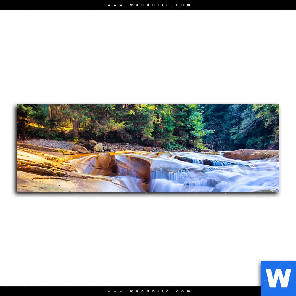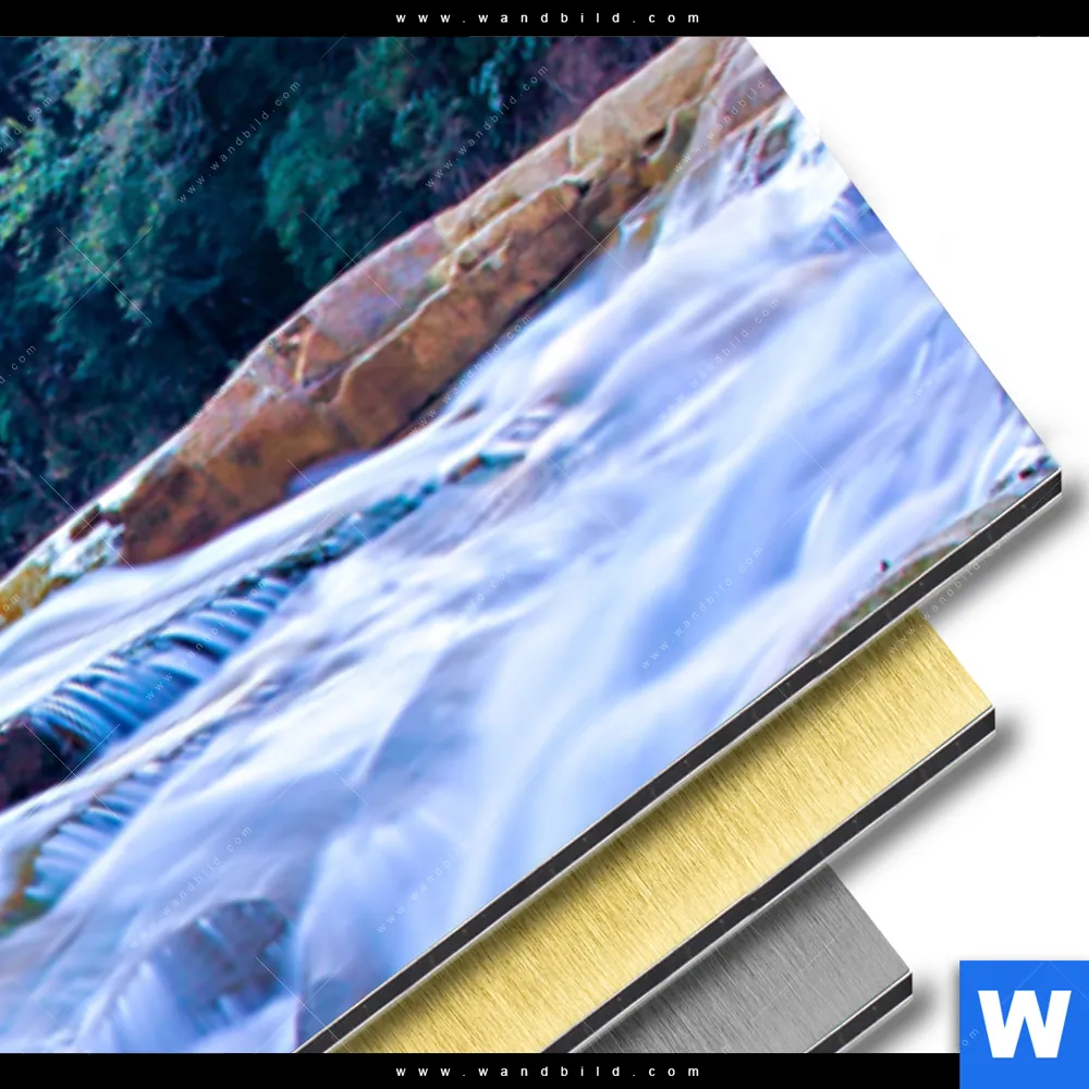 Aluminiumbild gebürstet | Schöner Wasserfall im Wald | Panorama