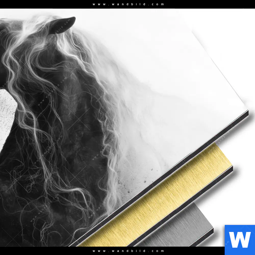 Aluminiumbild gebürstet | Schwarzes Pferd voller Energie | Hochformat