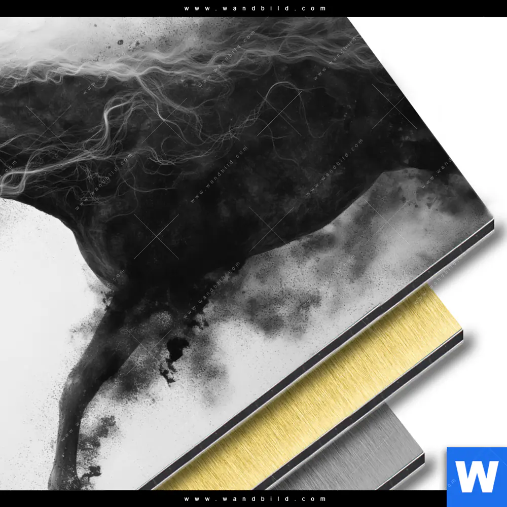 Aluminiumbild gebürstet | Schwarzes Pferd voller Energie | Quadrat