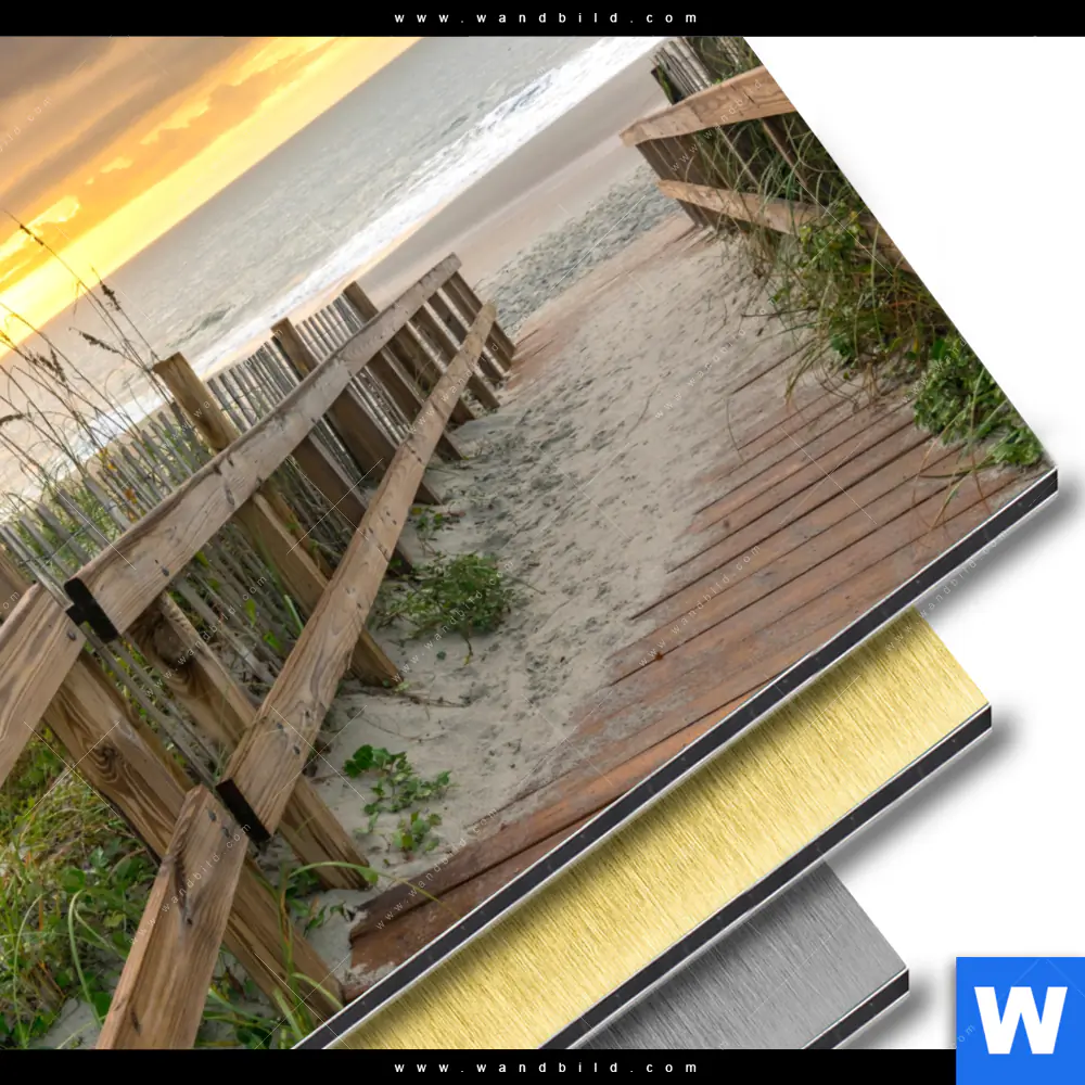 Aluminiumbild gebürstet | Sonnenuntergang am Strandweg | Quadrat