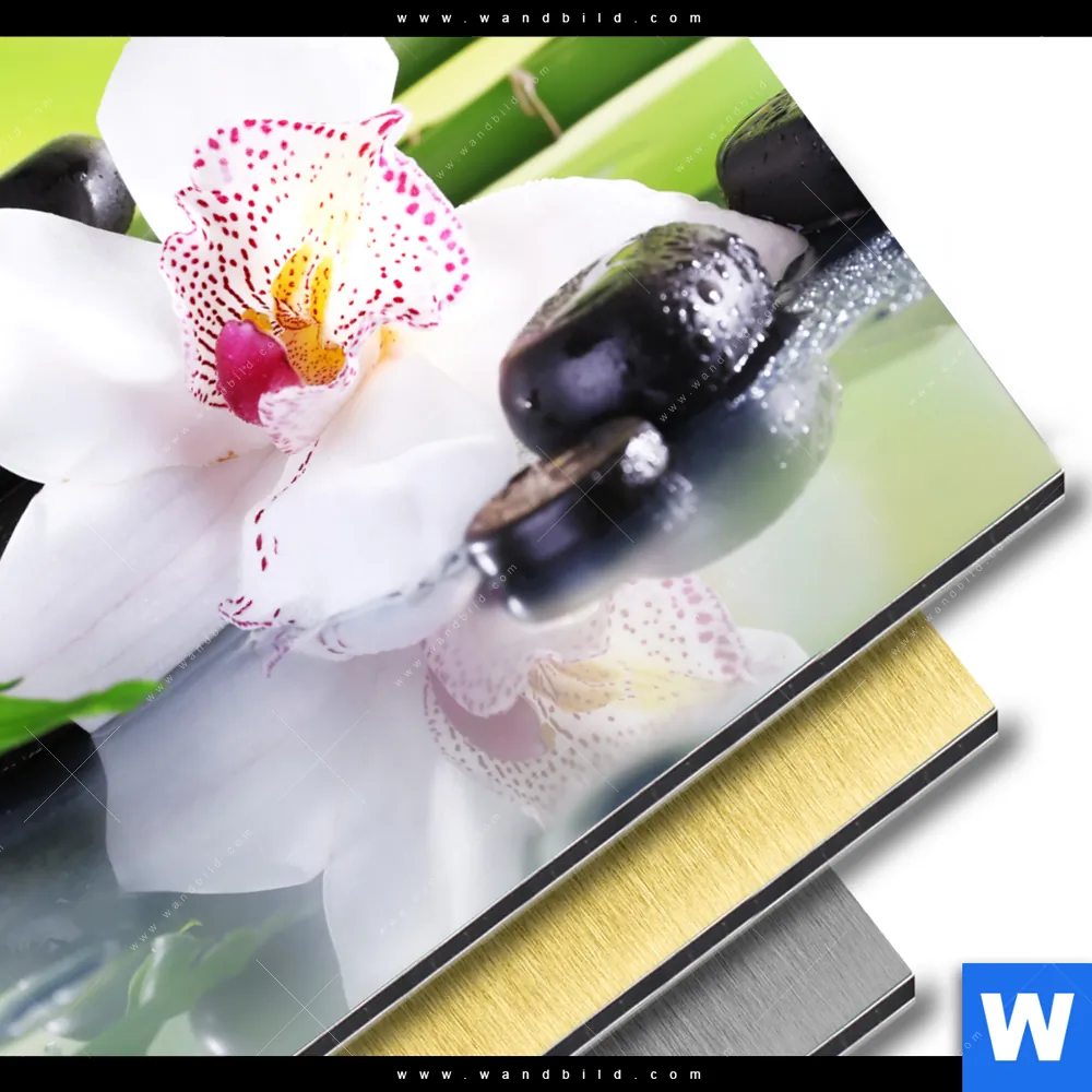 Blumen - Botanik, Buddha - Feng Shui Aluminiumbild mit metallischem Effekt inkl. vormontiertem Rückrahmen