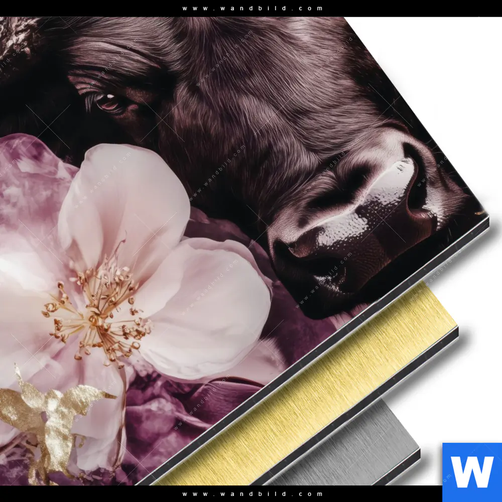 Aluminiumbild gebürstet | Stier mit Blumen | Rund