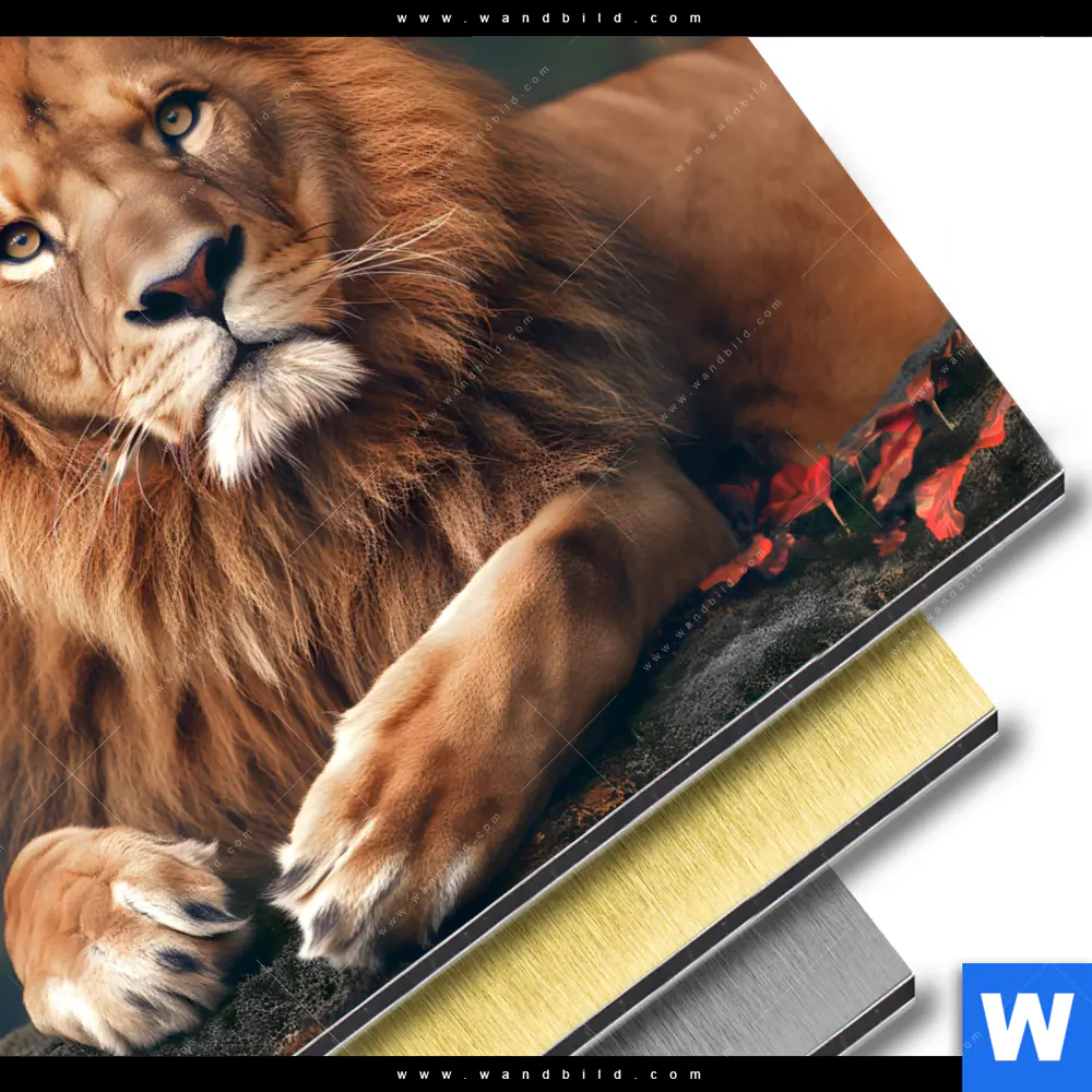 Aluminiumbild gebürstet | Stolzer Blick des Löwen | Quadrat