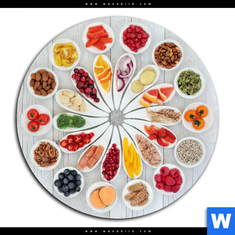 Aluminiumbild gebürstet | Superfoods im Farbkreis | Rund