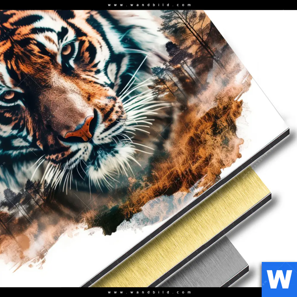 Aluminiumbild gebürstet | Tiger - Stärke und Natur | Quadrat