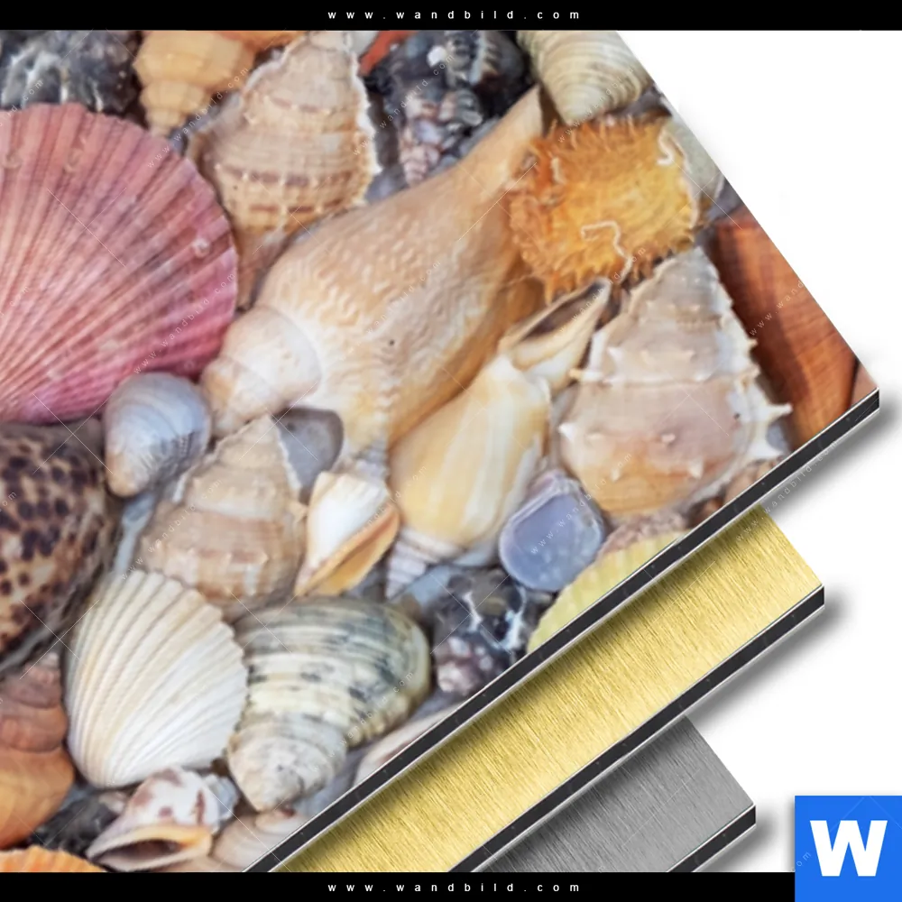 Aluminiumbild gebürstet | Viele Muscheln | Schmal