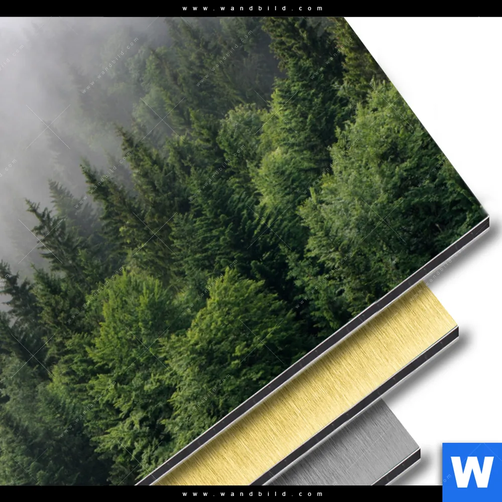 Landschaften, Wald - Bäume Aluminiumbild mit metallischem Effekt inkl. vormontiertem Rückrahmen