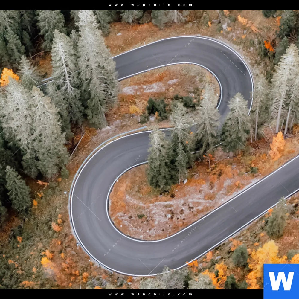 Aluminiumbild gebürstet | Wald & Straße von oben | Quadrat