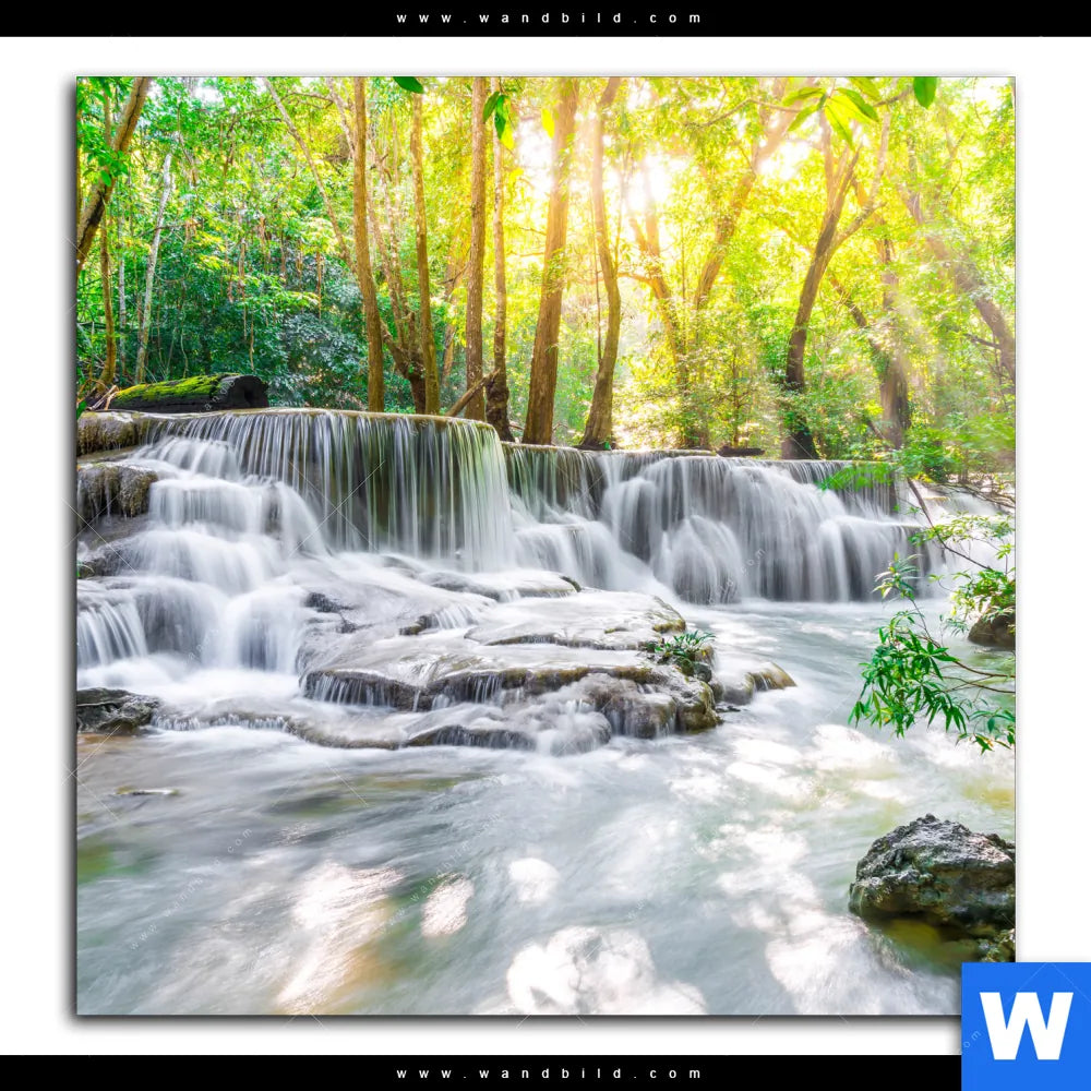 Aluminiumbild gebürstet | Wald & Wasserfall No. 1 | Quadrat