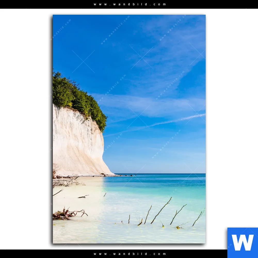 Aluminiumbild gebürstet | Weiße Kreidefelswand am Meer | Hochformat
