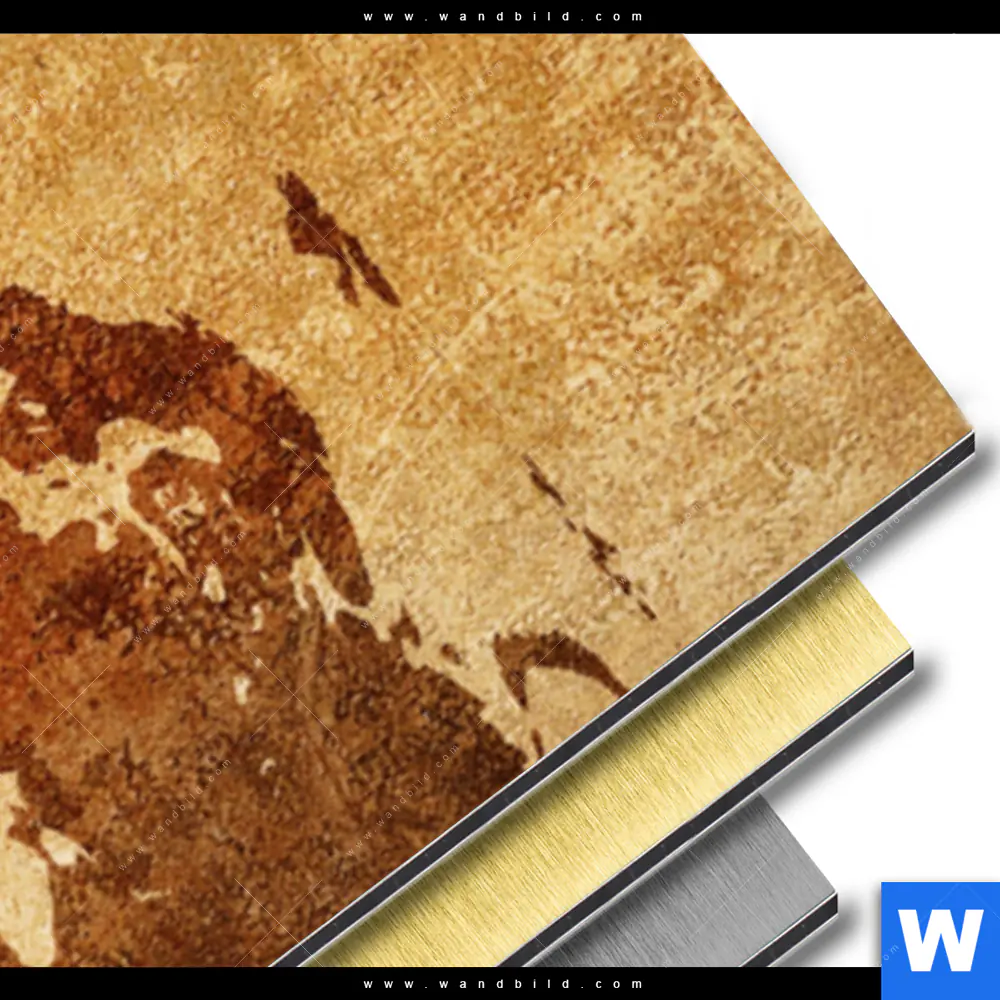 Aluminiumbild gebürstet | Weltkarte Rostoptik | Schmal