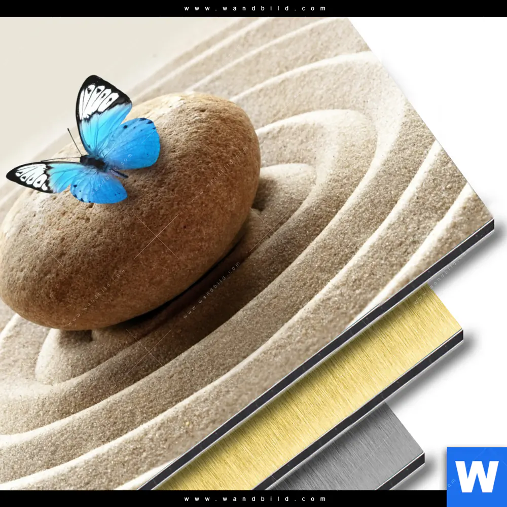 Aluminiumbild gebürstet | Zen Stein mit Schmetterling | Rund