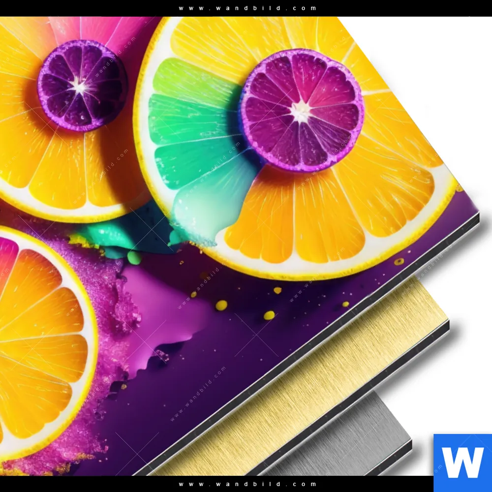 Aluminiumbild gebürstet | Zitronen Neon Farbe | Querformat