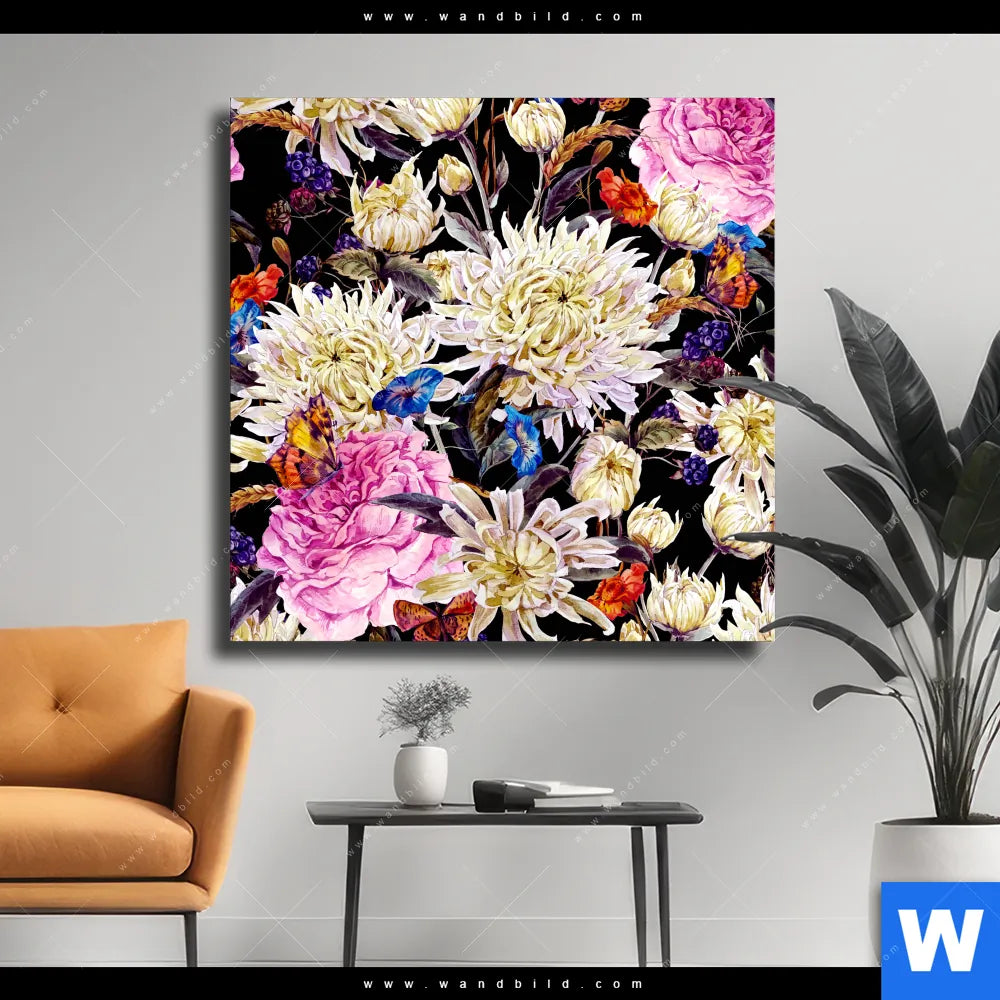 Leinwandbild | Aquarell von wilden Blumen | Quadrat