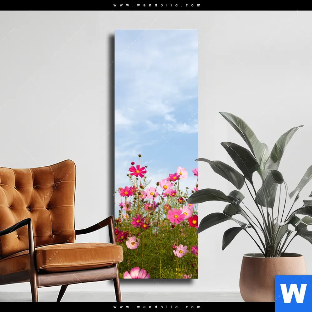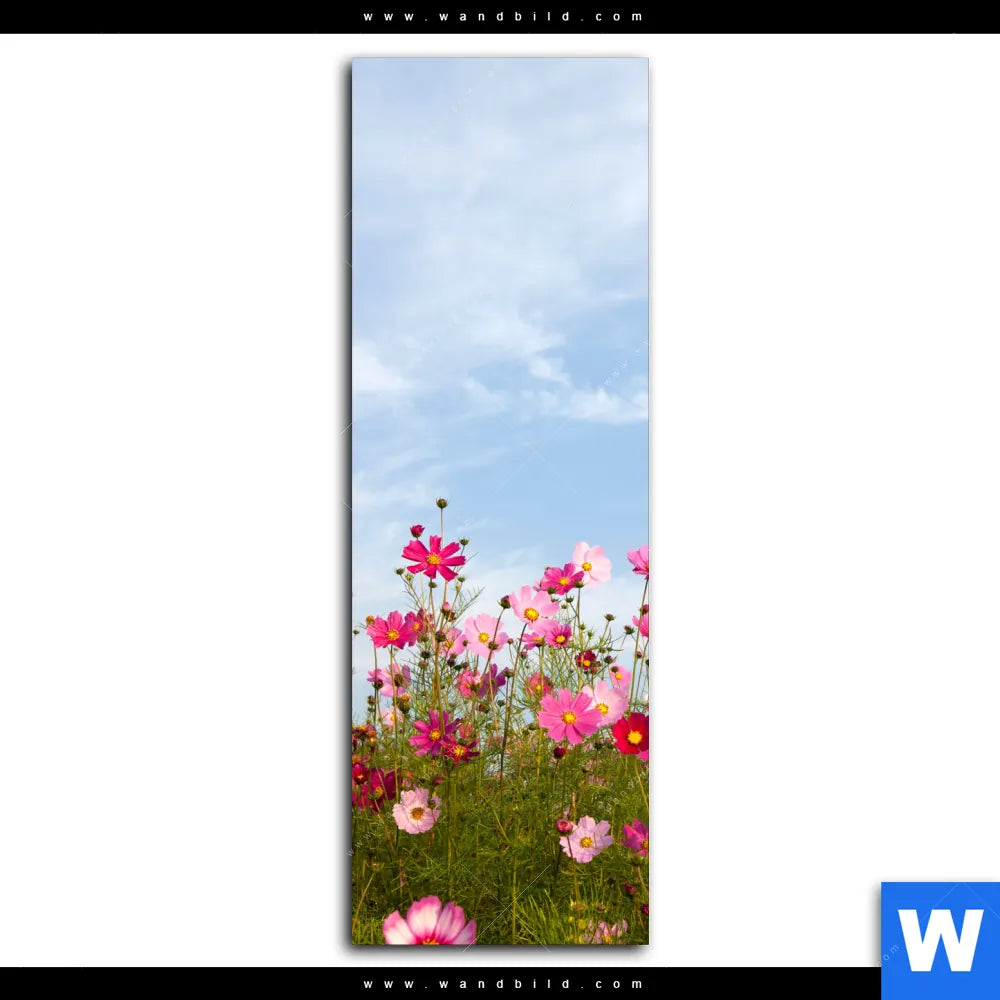 Leinwandbild | Blumenwiese bei strahlend blauem Himmel | Schmal