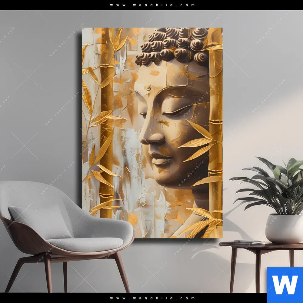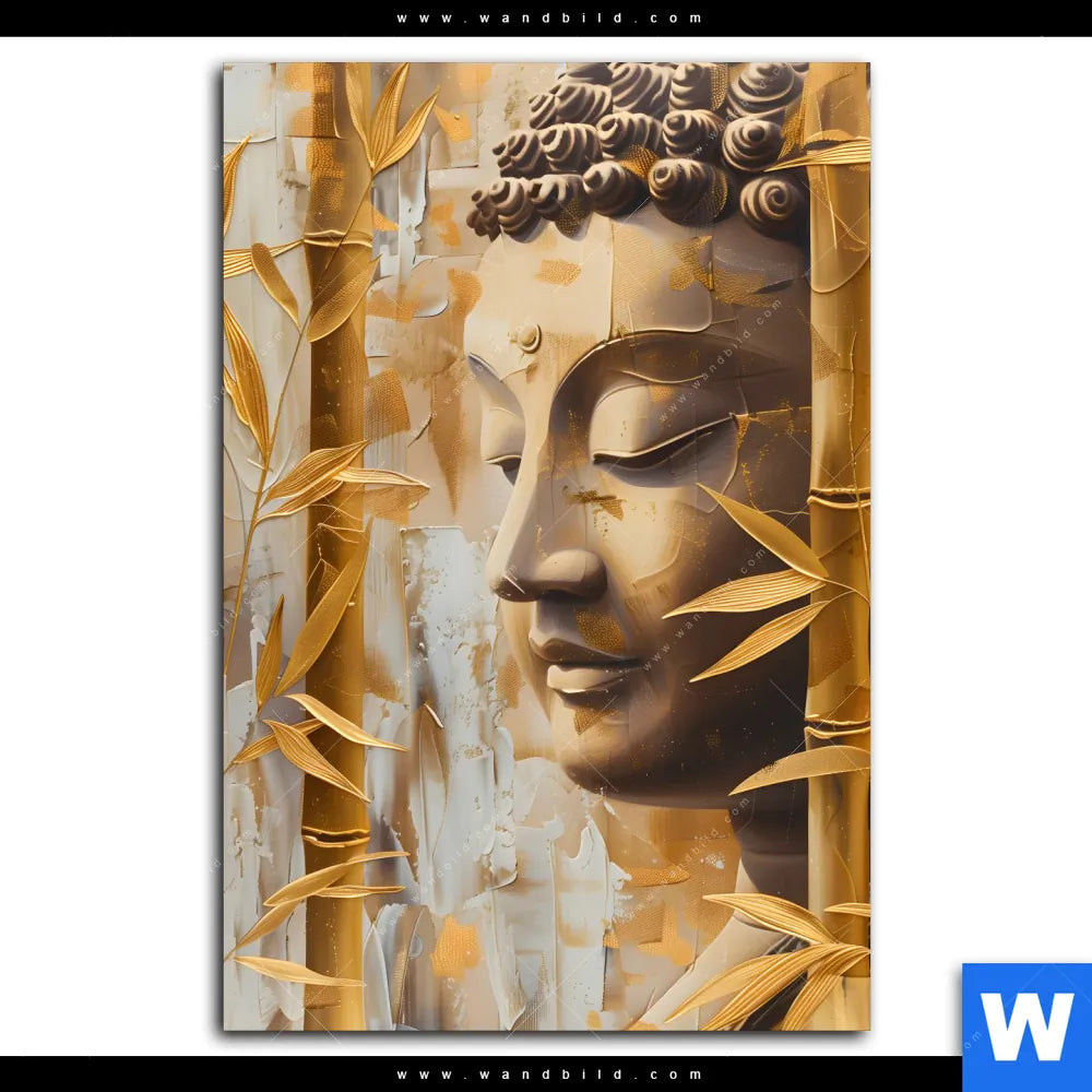 Leinwandbild | Buddha-Statue im goldenen Bambus | Hochformat