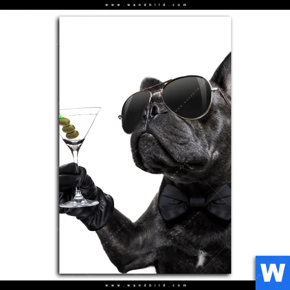 Leinwandbild | Bulldogge mit Martini | Hochformat