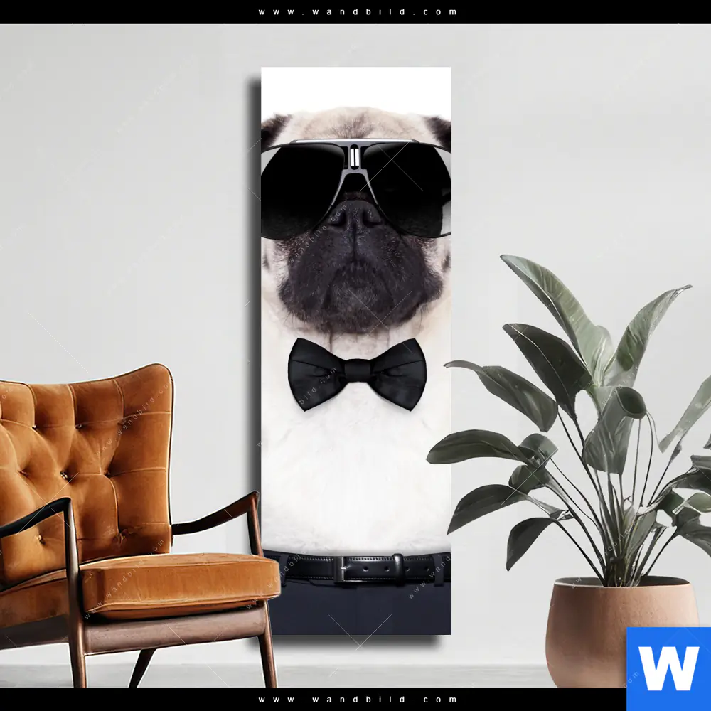 Leinwandbild | Cooler Mops mit Martini | Schmal