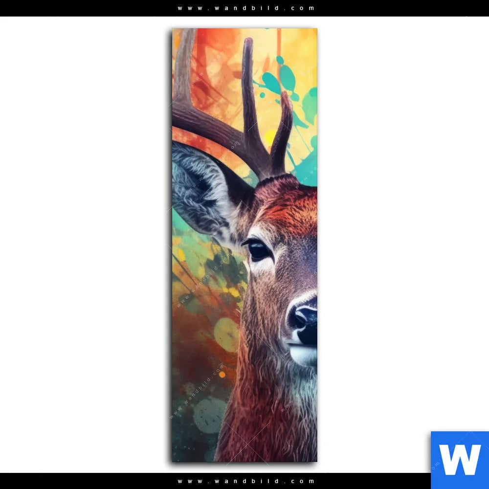Leinwandbild | Farbenfrohes Hirschporträt | Schmal