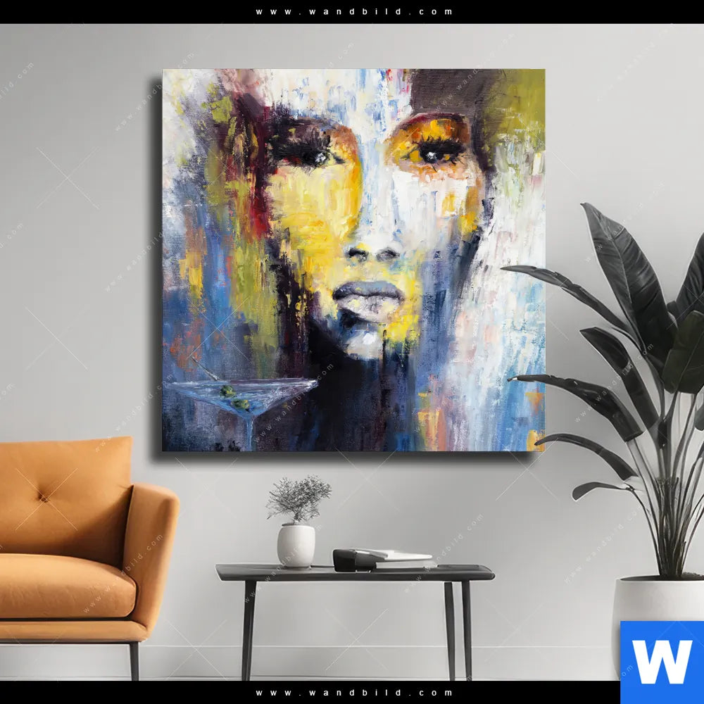 Leinwandbild | Frau & Martini Cocktail | Quadrat