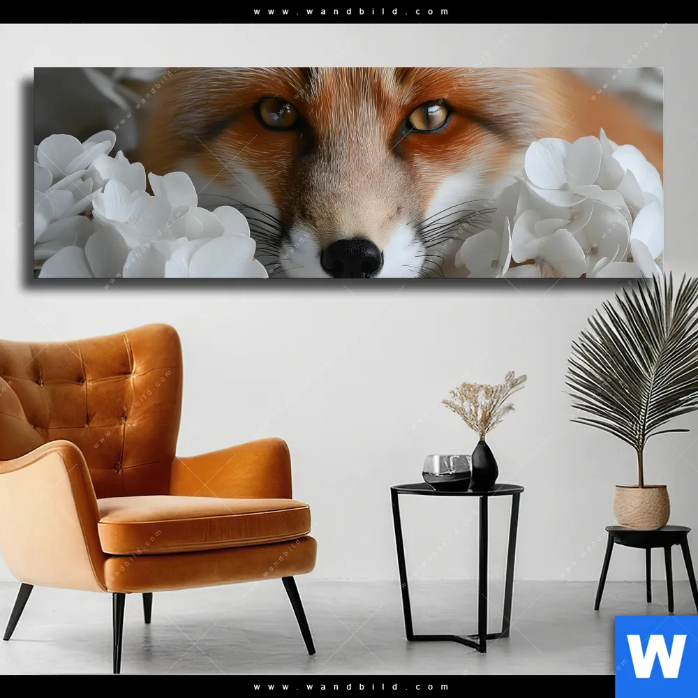 Leinwandbild | Friedlicher Fuchs und Blumen | Panorama