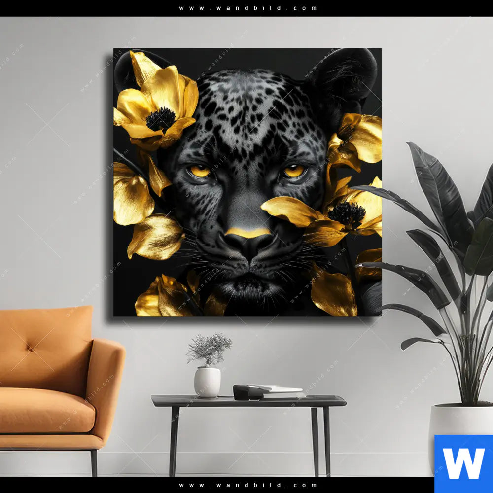Leinwandbild | Goldblumen & Panther | Quadrat