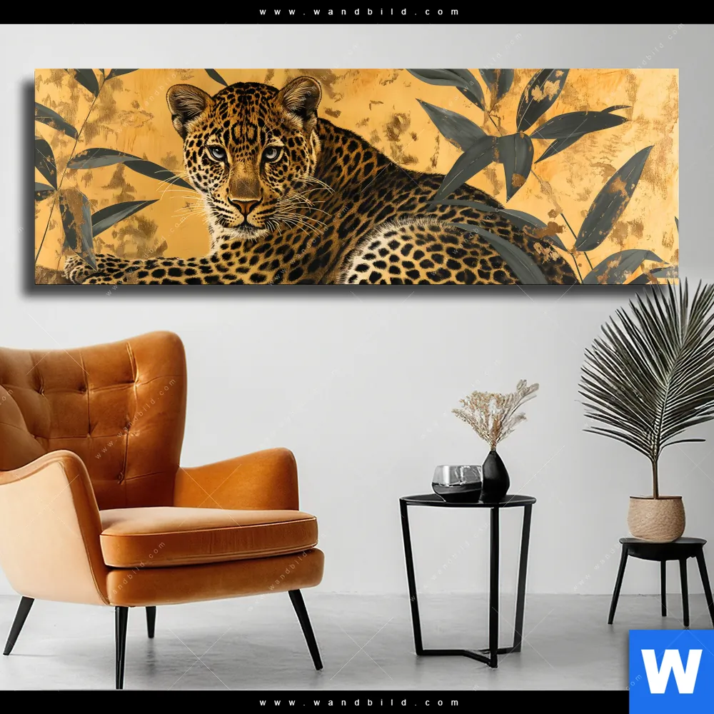Leinwandbild | Goldener Leopard - Imposanter Jäger | Panorama