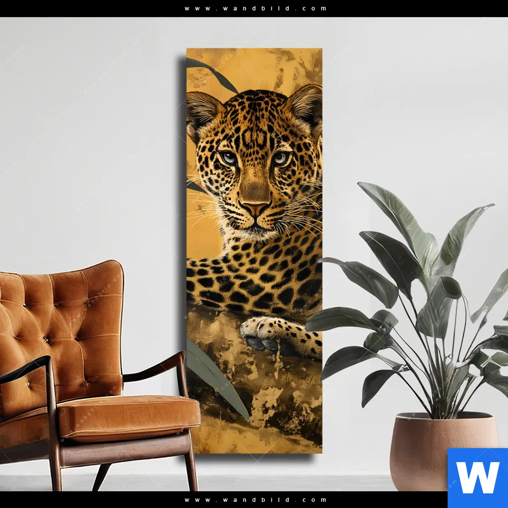 Leinwandbild | Goldener Leopard - Imposanter Jäger | Schmal