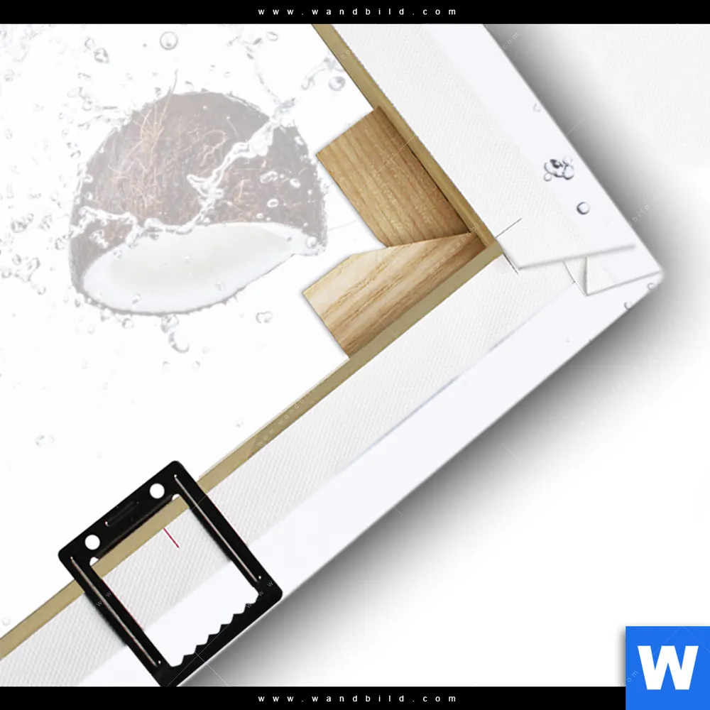 Leinwandbild | Kokosnüsse mit Wasserspritzer | Hochformat