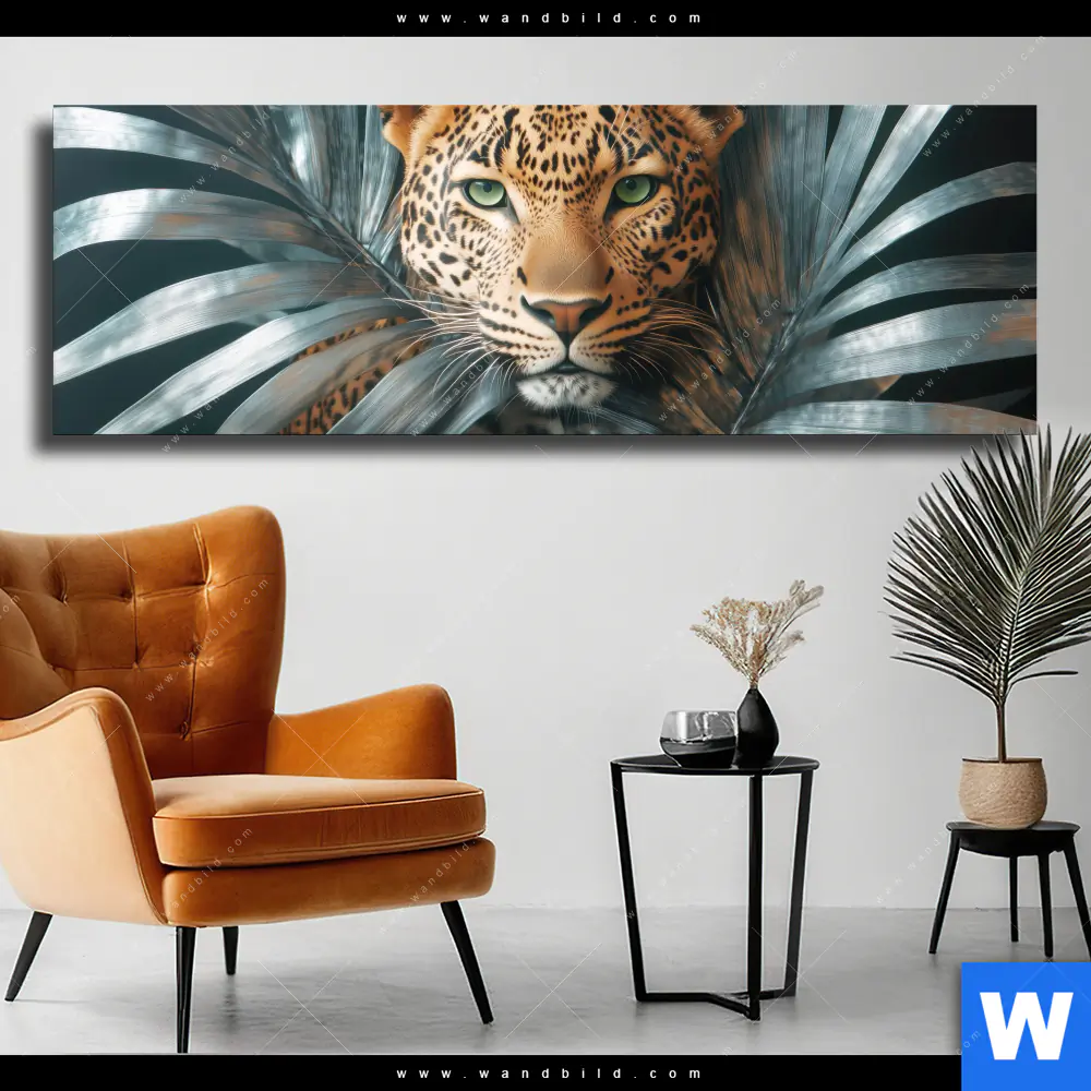 Leinwandbild | Leopard zwischen Blättern | Panorama