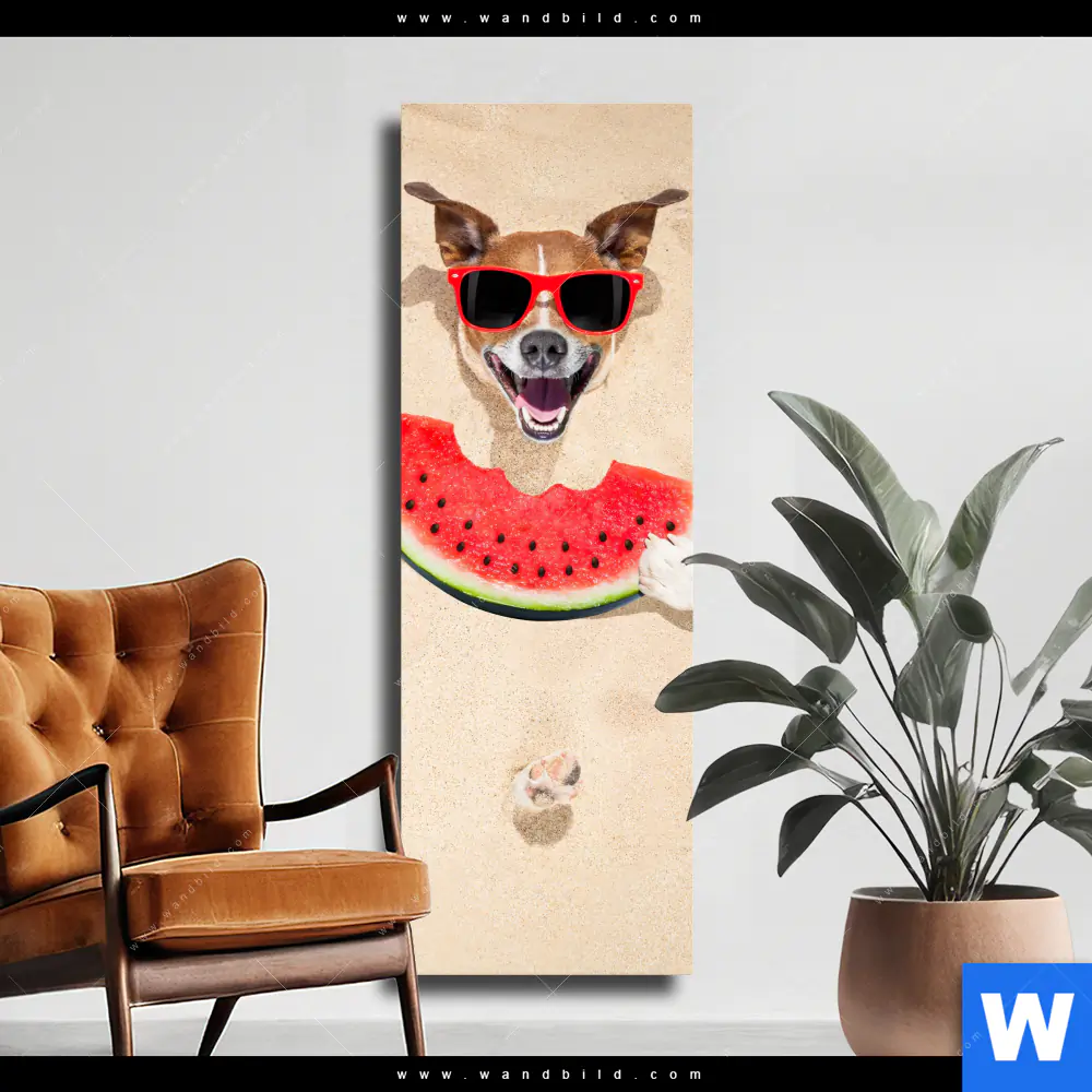 Leinwandbild | Lustiger Hund am Strand | Schmal