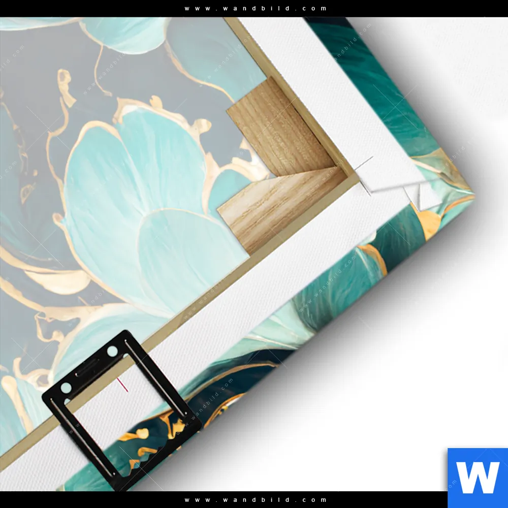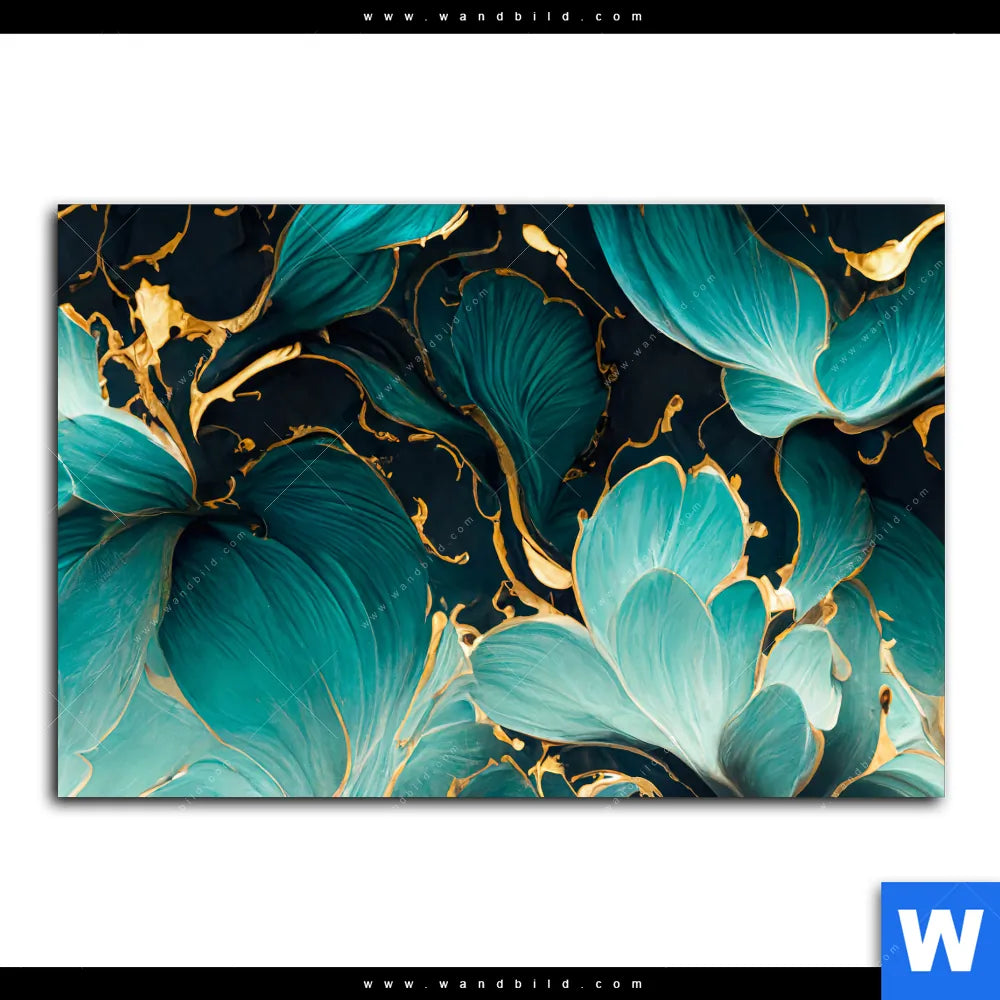Leinwandbild | Marmor Blüten in türkis & gold | Querformat