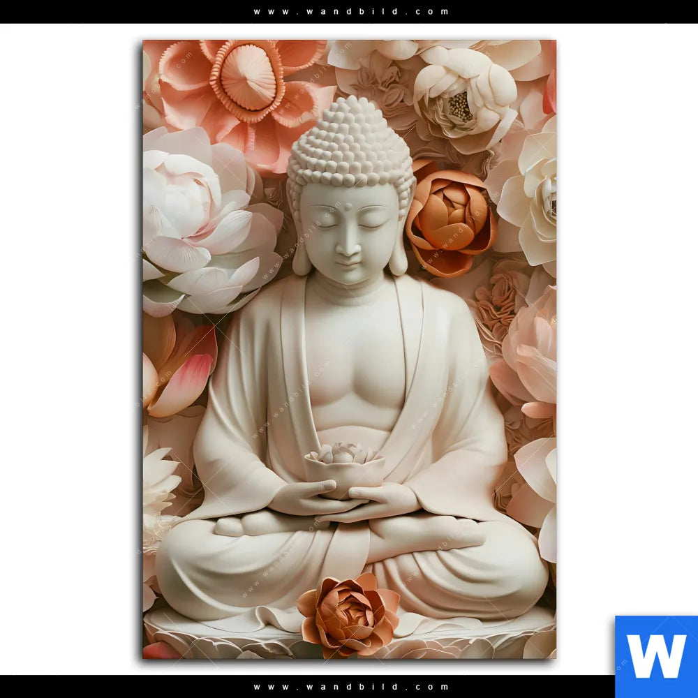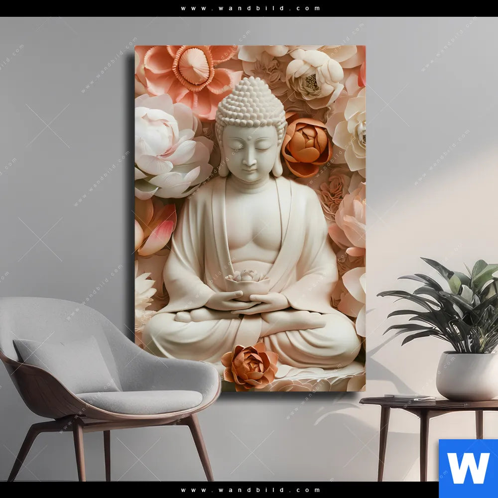 Leinwandbild | Meditierender Buddha mit Blüten | Hochformat