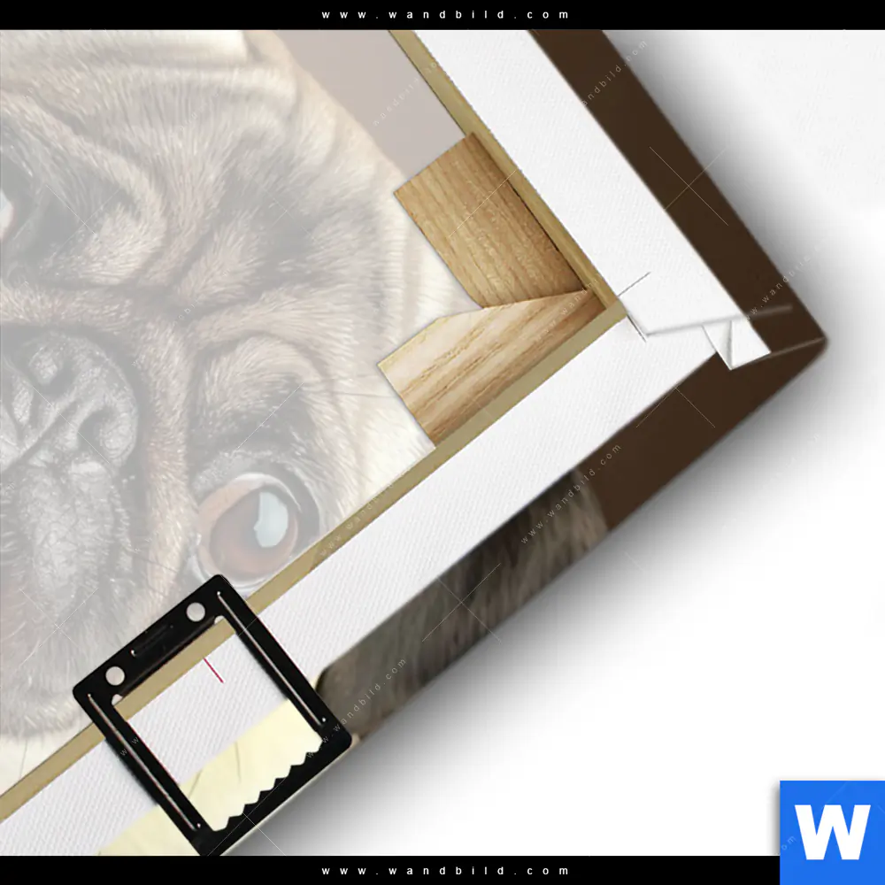 Leinwandbild | Mops mit Cheeseburger | Hochformat