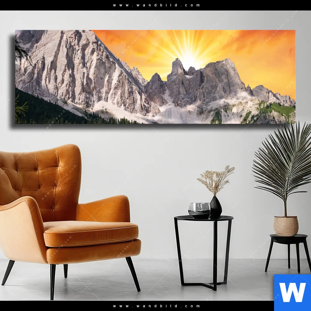 Leinwandbild | Sonnenuntergang in den Bergen | Panorama