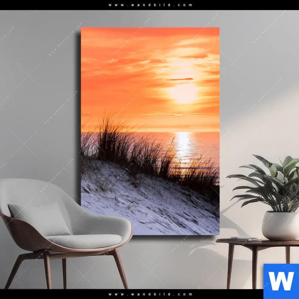 Leinwandbild | Sonnenuntergang mit Düne und Meer | Hochformat