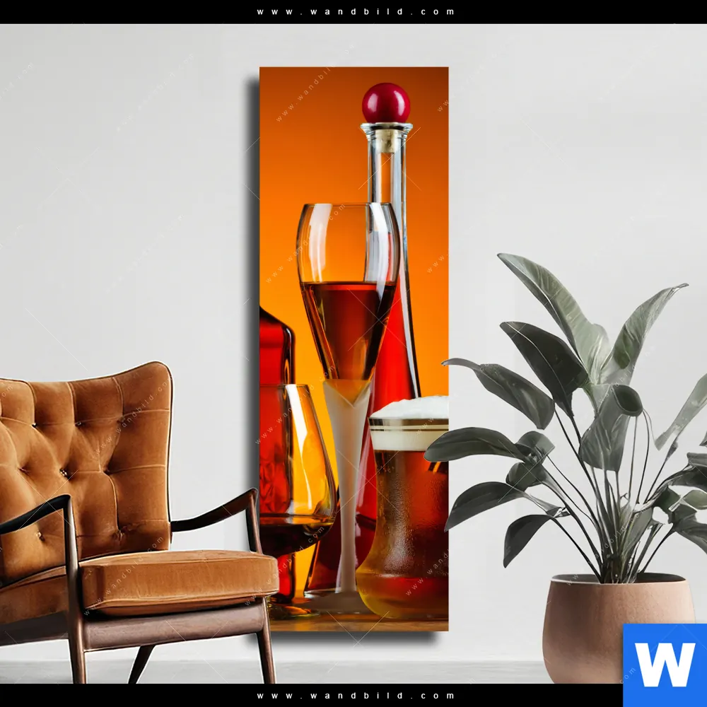 Leinwandbild | Stillleben Flaschen Gläser | Schmal