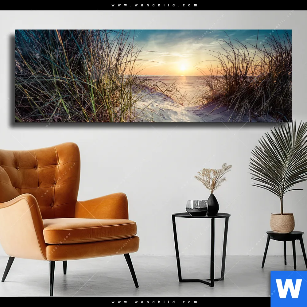 Leinwandbild | Strandlandschaft mit Gras | Panorama