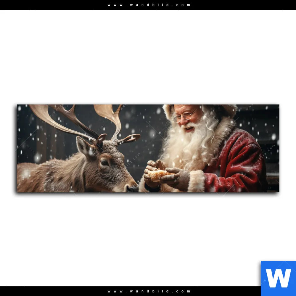 Leinwandbild | Weihnachtsmann füttert Rentier | Panorama