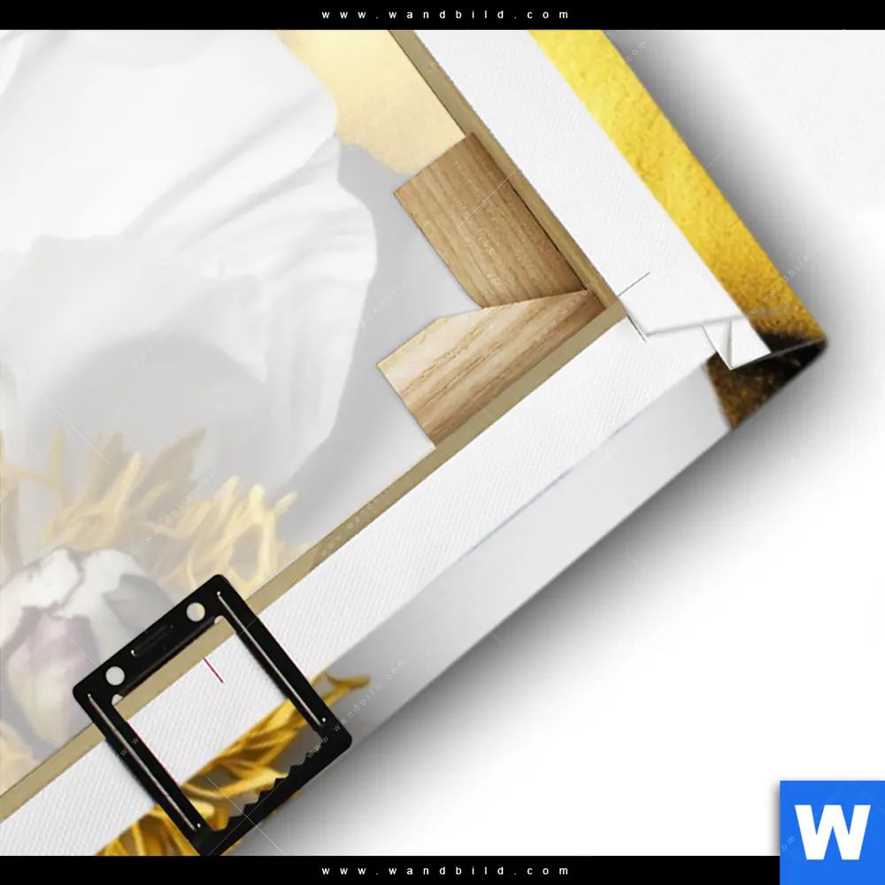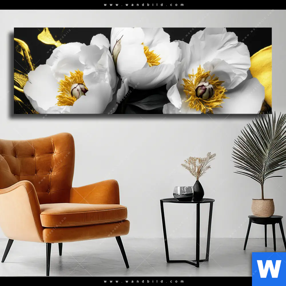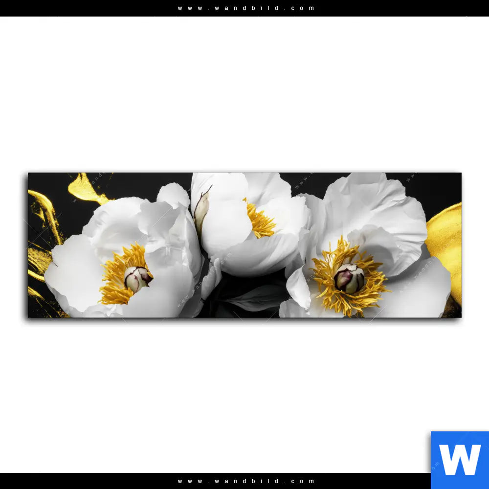Leinwandbild | Weiße Blumen mit Gold | Panorama