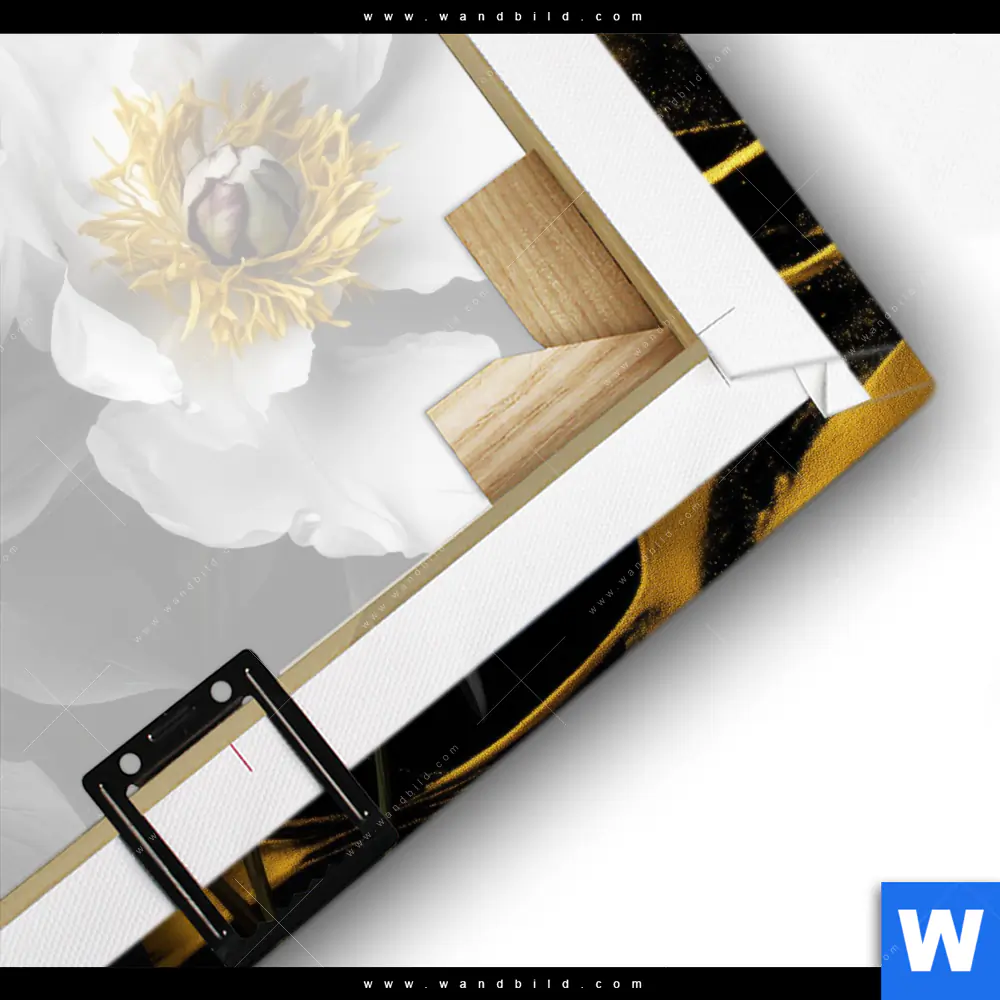 Leinwandbild | Weiße Blumen mit Gold | Quadrat