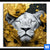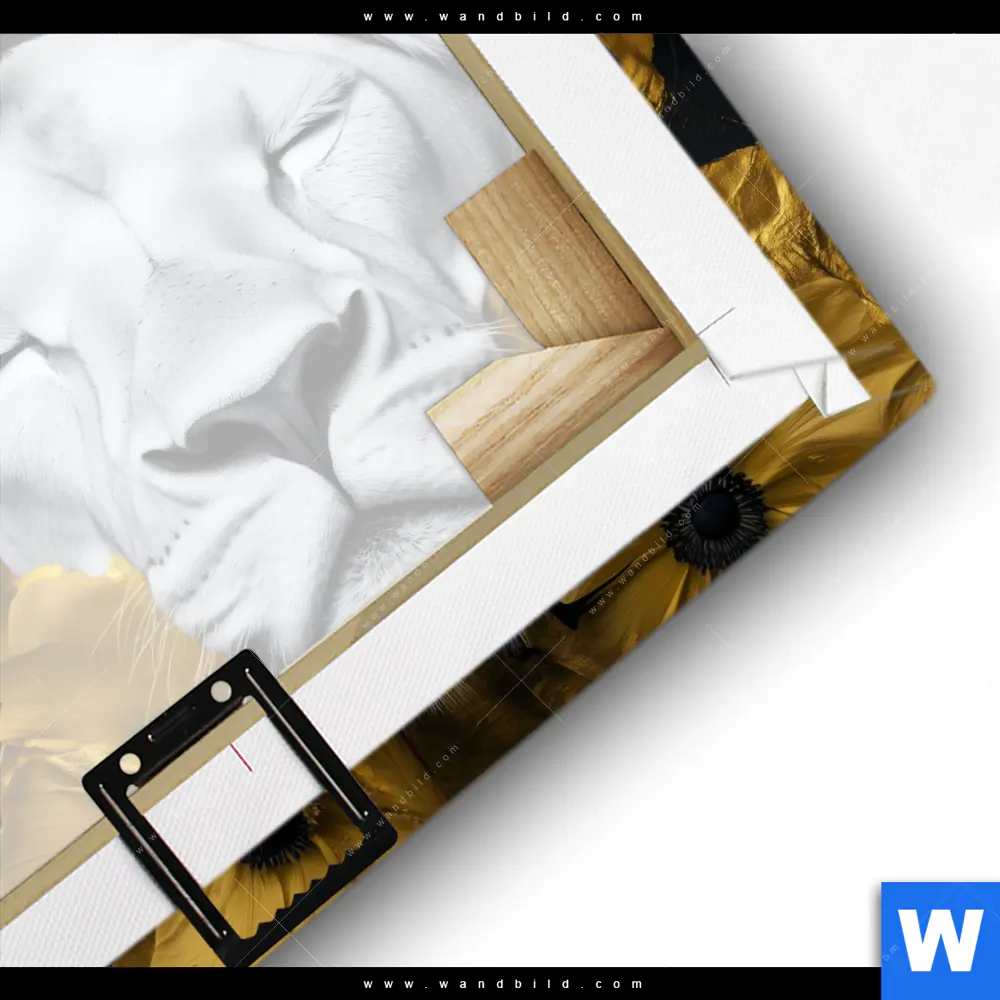 Leinwandbild | Weiße Löwin mit Goldblüten | Quadrat