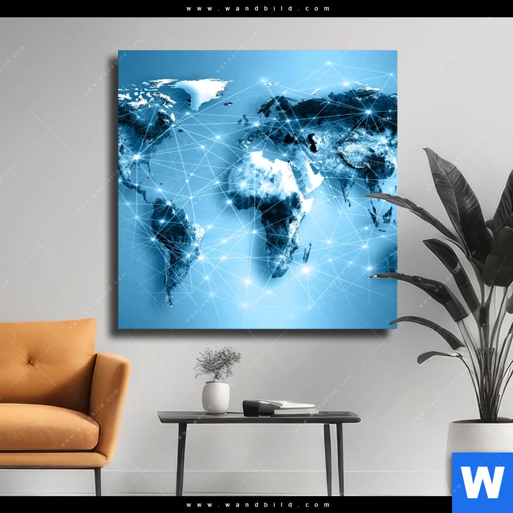 Leinwandbild | Weltkarte Kommunikation | Quadrat