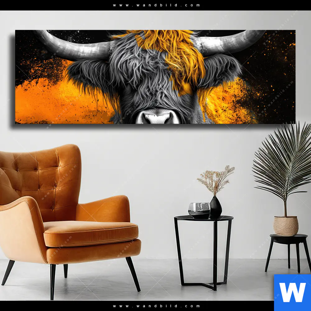 Leinwandbild | Zotteliges Hochland-Rind | Panorama