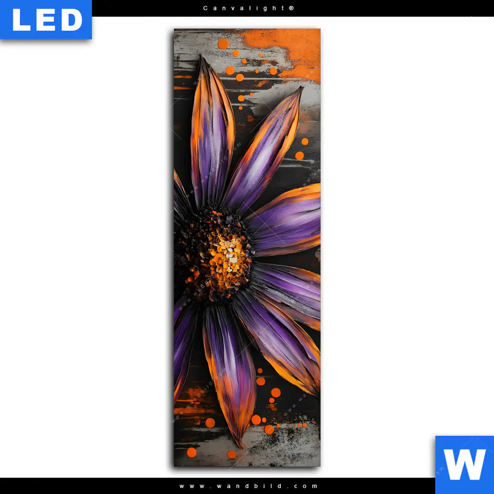 Canvalight® Leuchtbild | Abstrakte Blume in Orange & Lila | Schmal