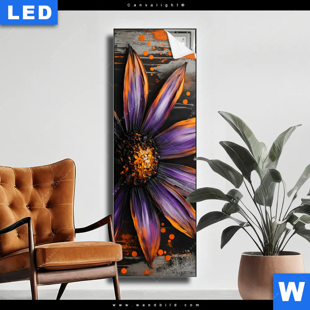 Canvalight® TEX Leuchtbild | Abstrakte Blume in Orange & Lila | Schmal