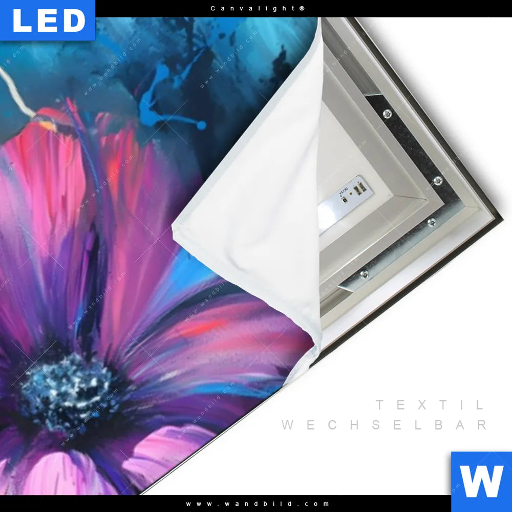 LED-Textilrahmen-Bild mit austauschbarem Blumen - Botanik Textil-Druck (Wechselbild)
